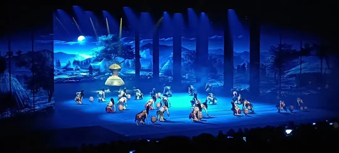 一臺(tái)演出一座城,一夢(mèng)千年一段情,從半坡先民與大自然的抗?fàn)?,到周禮詩(shī)風(fēng)的璀璨浪漫,到秦時(shí)明月漢時(shí)關(guān)的氣概,和東西融匯的大唐盛世,從遠(yuǎn)古走來(lái),向未來(lái)出發(fā)。